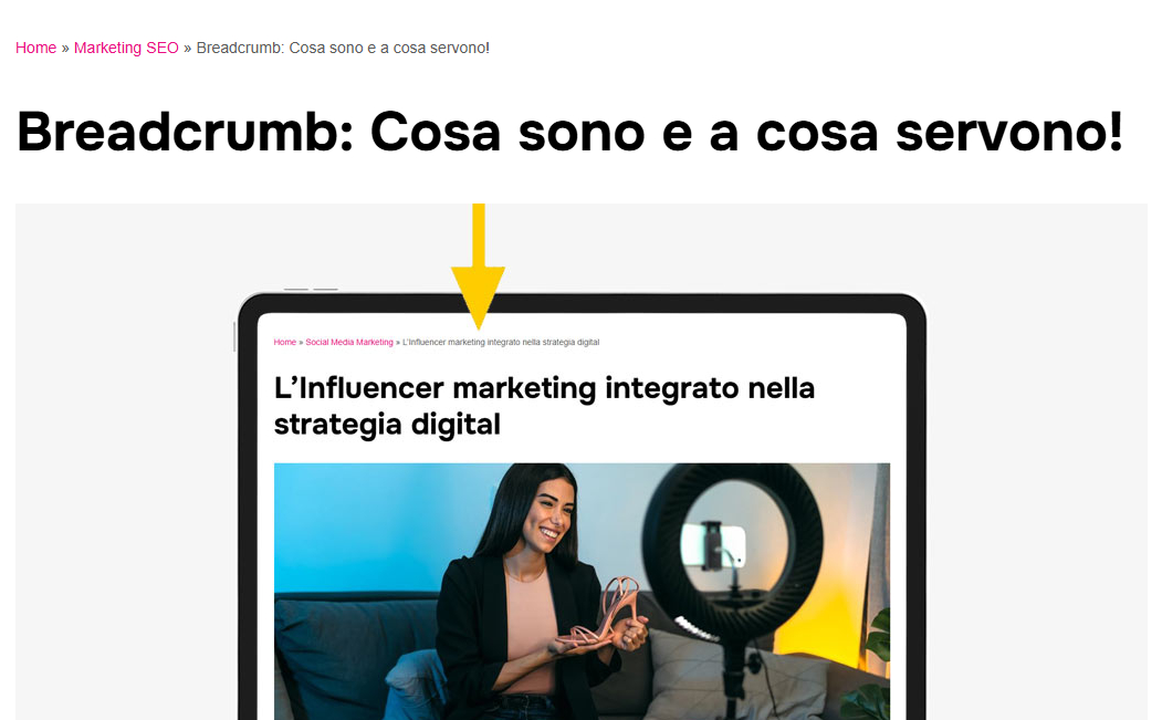 In fact, if you try to use the breadcrumb featured in our articles, you can see that each element is a real link (internal hyperlinks), and the path describes the hierarchical structure: